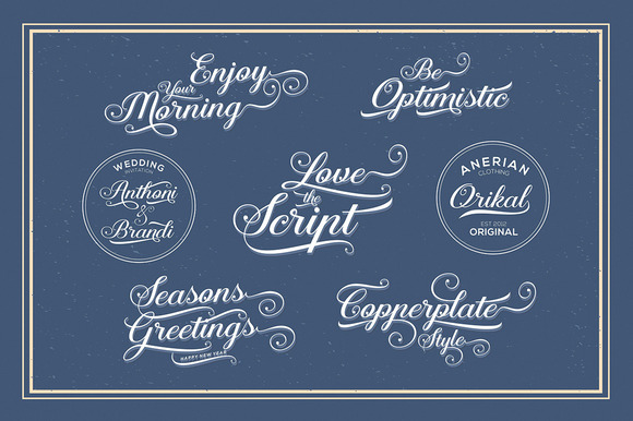 Stylistic alternates, Ornament, swash and more. can be used for various purposes.such as logos, wedding invitation, t-shirt, letterhead, signage, news, posters, badges etc. To enable the OpenType Stylistic alternates, you need a program that supports OpenType features such as Adobe Illustrator CS, Adobe Indesign & CorelDraw X6-X7.