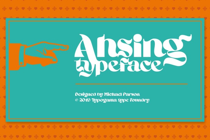 Inspired by a wide range of sources and styles, Ahsing is a single weight typeface that aims to explore new design solutions. With a bold form a strong contrast and pronounced diagonal axis, this design hints both at past typeface styles while being unique and original in it’s appearance. Thanks a large range of Opentype features and an expanded character set, this single font provides a versatile and distinctive solution for setting titles or any large text that need to catch your viewers attention.