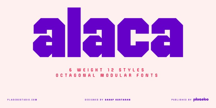 Le caractère Alaca a été conçu, sur la base de sa forme octogonale, comme une famille contemporaine, dynamique et moderne police .