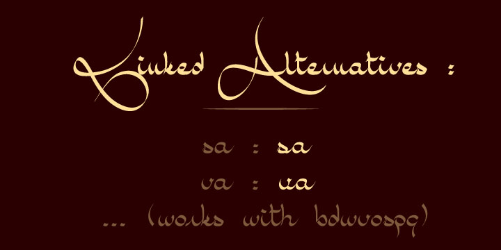This elegant association of large calligraphed capital letters with smaller lower-case letters, makes this refreshing font best fit for short writings, ornamental ones, or long lower-case ones.