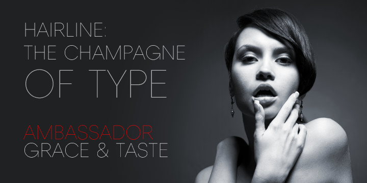 Hairline display fonts are elegant and subtle with touch of luxury. They are the Champagne of type. Ambassador represents a classy typeface best suitable for magazines, cosmetics packaging, advertising or any kind of fine and sensitive design.