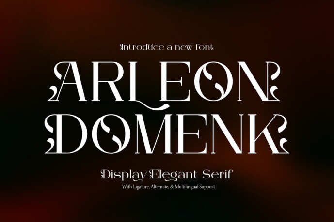 Arleon Domenk Font | Display Elegant Serif, from Denustudios, suitable for any projects such as: logos, branding projects, homeware designs, product packaging, mugs, quotes, posters, shopping bags, t-shirts, book covers, name card, invitation cards, greeting cards, label, photography, watermark, special events, and all your other lovely projects that need a Display Elegant Serif taste.