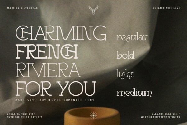A brand new year is here and a brand new font is here as well. I have to say I had so much fun working on this funky slab serif typeface. I have created some quirky letters and over 100 ligatures + the font comes in four weights – light, regular, medium & italic.