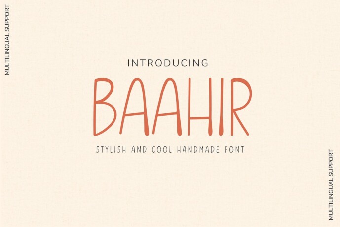 Introducing Baahir Handmade Font – the epitome of artistic creativity delicately crafted by hand. This unique font breathes life into logos, brings elegance to invitations, adds personality to posters, and infuses charm into cards. With a complete set of characters, Baahir Handmade Font seamlessly bridges the gap between design and communication. It’s compatible across all PC & Mac platforms, making it a versatile accessory to your creative toolkit. Embrace the sophistication of Baahir Handmade Font and elevate your designs to a whole new level.