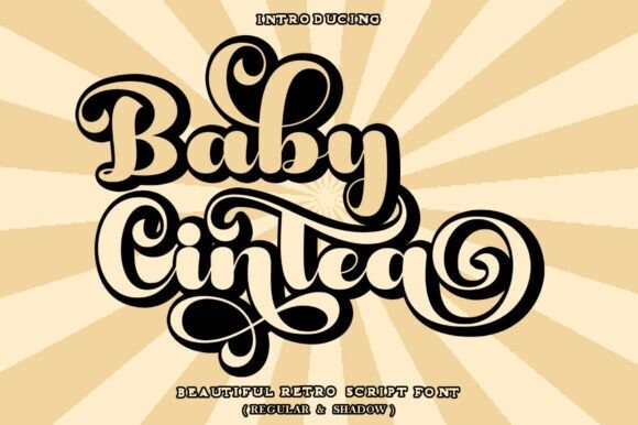 Baby Cintea Font. A bold retro script that will take you back to the spirit of adding to your designs. This typeface has an extrude version so you can create a retro effect font easily. This font is very suitable for the application, especially on logos, and various other formal forms such as invitations, labels, logos, magazines, books, greeting/wedding cards, packaging, fashion, makeup, stationery, novels, labels, or all kinds of things. advertising purposes.