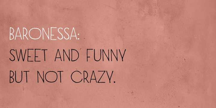 Baronessa is a handmade font with a “once-upon-a-time” world feeling, warm and friendly but not excessively childish. No swashes or ornaments, subtle irregularity and carefully chosen letter shapes make it sweet and funny but not crazy.