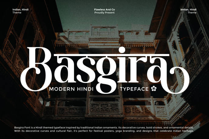Basgira Font is a modern Hindi-themed font inspired by traditional Indian ornaments. Its elegant decorative strokes, bold lines, and cultural details bring a sense of heritage and sophistication to any design. With its artistic curves and ornamental flair, Basgira is perfect for festival posters, yoga branding, cultural events, packaging, and projects that celebrate Indian tradition with a contemporary touch.