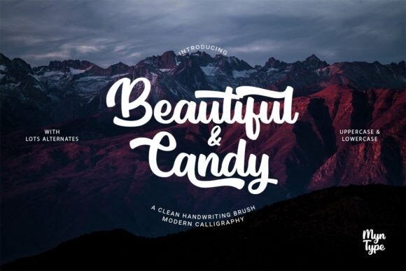 Beautiful Candy Font. A clean handwriting font with consistent, bold neat strokes and a casual touch. It is perfect for logos branding, apparel, elegant websites, magazines, wedding invitations, social media posts or simply to use to express words over a background and anything else your heart desires! So, it is suitable for any design.