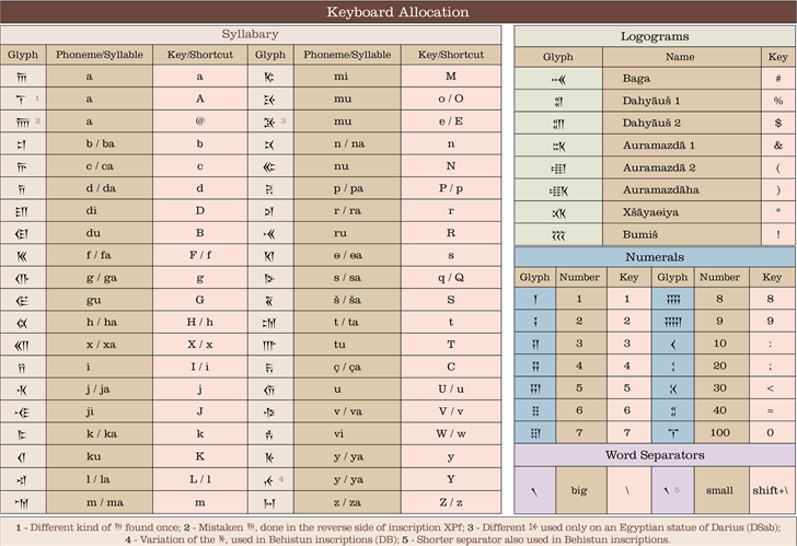 Developed with the help of Mr. Keyvan Mahmmoudi, from the University of Teheran, the glyphs are allocated over very convenient keys, but also works for Unicode. This font includes every known glyph for this ancient inscript. This is a free non-commercial font and should not be selled by any means. For more details on how to use the font, corrections, comissions, permissions or suggestions, contact me: [email protected]