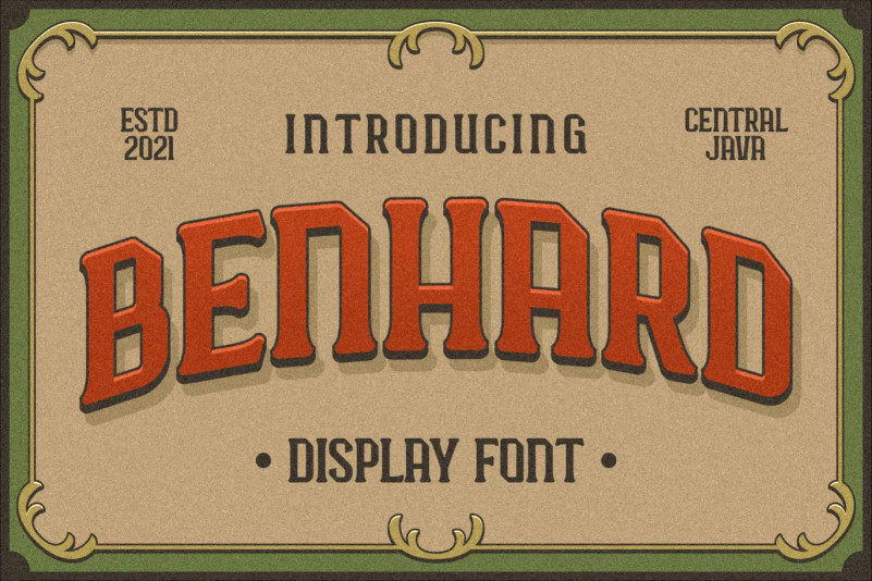 BENHARD is a display font with masculine characteristics suitable for old or modern styles, this font can be combined with a sans-serif font suitable for poster fonts, logos, headlines, titles on book covers, films, content and others.
