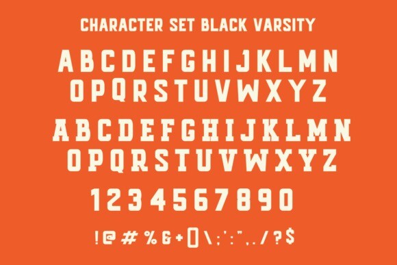 Black Varsity Font is a contemporary display font that exudes unique charisma. The design subtly highlights prominent variations in the style of uppercase and lowercase characters on the glyphs, turning each appearance into a charming visual treat. Black Varsity effortlessly incorporates its modern touch into many designs, making it an instant favorite in the genres of quotes, jackets, sports gear, packaging design, logos, and text effects. Its versatile charm even works well on t-shirts, mugs, and many other mediums, making Black Varsity more than just a font—it’s your partner in creative expression.