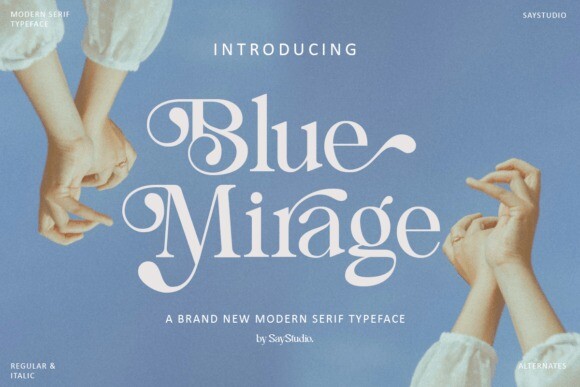 Blue Mirage is a modern serif with high contrast and elegant curves, more than just a pretty face. With over 60 unique and modern alternate letters, and incredibly versatile, allowing you to create truly unique and captivating typefaces perfect for any project that demands a touch of sophistication and lots of personality.