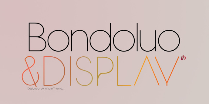 Bondoluo Font is a geometric font family developed by Álvaro Thomáz in 2012, The creation process was inspired by 3 geometric forms – triangle, circles and squares – and 2 amazing fonts – Futura® and URW Gothic. The Bondoluo Display font was inspired by Diamonds by HVD. Be fashionable with Bondoluo fonts!