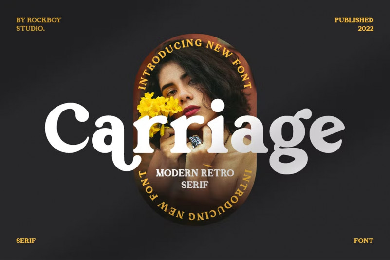 Carriage is an elegant and distinct serif font. Suitable to a wide variety of designs due to its neat and simple style, this font has the potential to become your favorite go-to font, no matter the occasion!