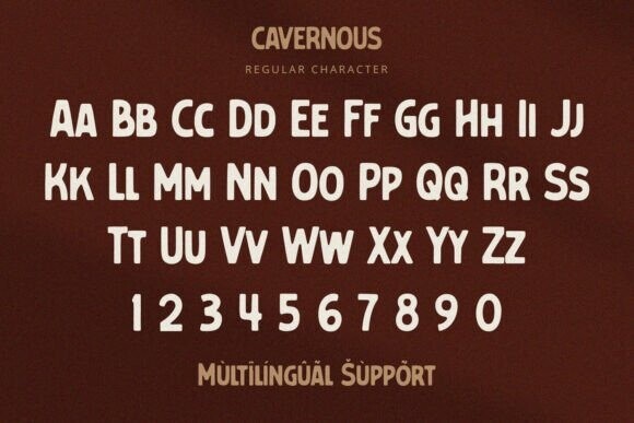 Cavernous Font is a rough display font with unique and classic feels. It will be perfectly used for magazine, packaging, posters, shopping bags, t-shirts, book covers, photography, special events and other design projects.