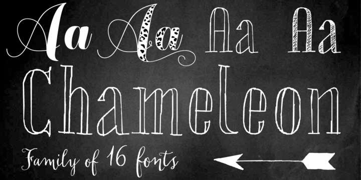 Chameleon consists of 16 fonts based on 3 completely different designs. Different but specially designed to complement each other. Together they form a well-balanced design kit suitable for many different projects, e.g. invites, menus, magazines, brochures, packaging, etc.