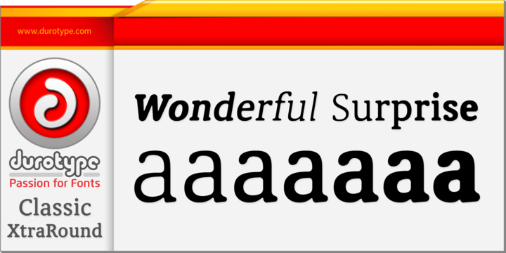 Classic XtraRound has maximum roundness — and is still legible. It can be used as an interesting workhorse in small text sizes. It makes eye-catching headlines in big display sizes.