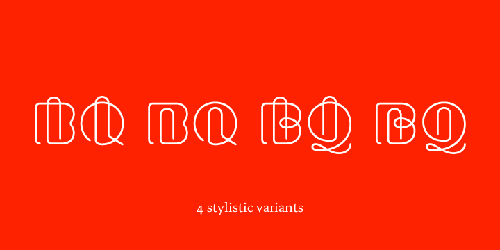 Clip family consists of 3 fonts, Hair, Light and Regular, each with 745 glyphs (supporting more than 70 latin based languages), 4 stylistic sets and advanced OpenType features. When Stylistic set 1 is activated, the overlapping loops contract, giving the text a whole new character. Moreover, every uppercase character is also available in an ornamental swash variant, which means most of the capitals have four different versions.