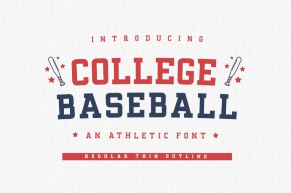 College Baseball Font is a fun, cool, athletic display font with 3 style variations regular, thin, and outline. Perfect for sports-themed designs such as posters, t-shirts, jerseys, sports logos, merchandise, advertising on posters, websites, and more.