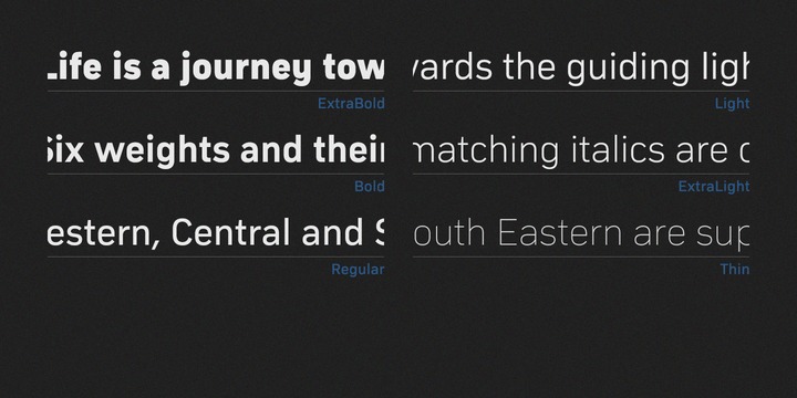 Compasse is a semi-condensed sans-serif family designed by Ryoichi Tsunekawa and the whole family consists of 12 style: six weights from Thin to ExtraBold and their matching Italics. The range of styles provides flexibility for title, headline and body text.
