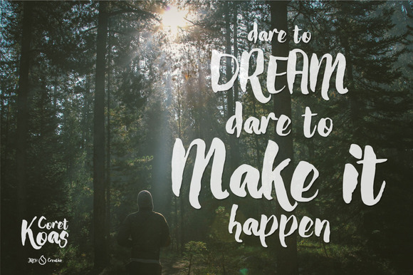 Introducing CoretKoas is an expression of mood. Spontaneous brush and easy flow give the natural looks. Great for designing book covers, film covers, apparel, cards, logos, poster, souvenirs, T-Shirt, etc.