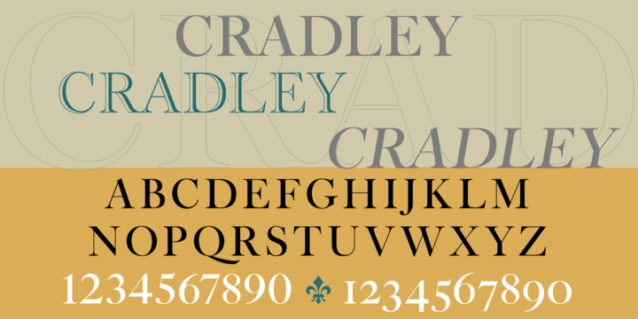 With its classic proportions, beautifully bracketed serifs, and high contrast, Cradley is a contemporary design with a Baroque spirit. The family of three beautifully crafted fonts support most European languages, including modern Greek and many languages that use the Cyrillic alphabet. Includes over 30 “flowers” (as Caslon called them), useful for creating borders or adding an accent. Спасибо / thanks to Alexei Elfimov for his suggestions for improving the Cyrillic, and to Max Fernandes for his helpful feedback and overall enthusiasm for this design.