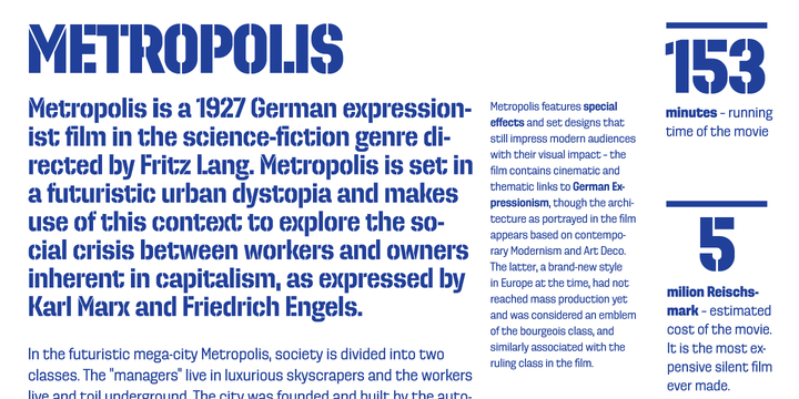 Dezen is a contemporary, mechanical grotesque typeface. Its letters were first constructed from individual modules and then optically refined to enhance its rhythm. Its tight letter spacing and narrow proportions make the typeface particularly well suited for display sizes and headlines. When you add spacing, font can be used for shorter amount of text, bigger than 12 points.