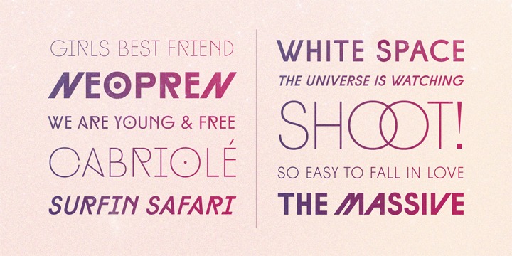 The Diamonds type family was designed by Hannes von Döhren in 2012. It is an experimental search for geometric new letterforms, which are still easy to read and generate some unexpected attention. Hannes wanted to create a straight and clear typeface but pull away from the path of classic and well learned letter shapes.