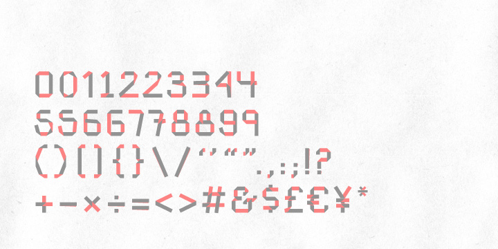 Each character of Dog Eared began its life as a half-inch wide strip of paper, folded and Scotch-taped into formation, and then scanned and recreated digitally. Dog Eared is distinguished from other folded paper style typefaces by its robustness and versatility: each numeral and upper- and lowercase letter has a stylistic alternate. Dog Eared Striped is a traditional single color font, while Dog Eared Solid is a chromatic variant that can be used for a two-toned effect. Layer and multiply Dog Eared Striped and Dog Eared Solid together to achieve even more color variety.