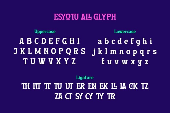 Esyotu Font, a serif font designed to amplify every design’s spirit of adventure and wonder. Esyotu brings strong and dynamic serif elements, creating a classic look presented with a modern and inviting touch.