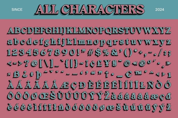 Felonia 3D Font is a classic serif font that exudes retro charm, enhanced by a striking 3D effect. Its design brings a nostalgic feel to your projects, while the modern dimensionality adds visual depth, creating a unique and captivating look.
