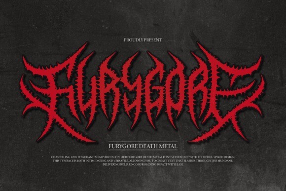 Furygore Font is a bold and aggressive Death Metal font, featuring sharp, jagged edges and a dark, gritty style. It’s perfect for heavy music, capturing the intensity and raw power of the genre.