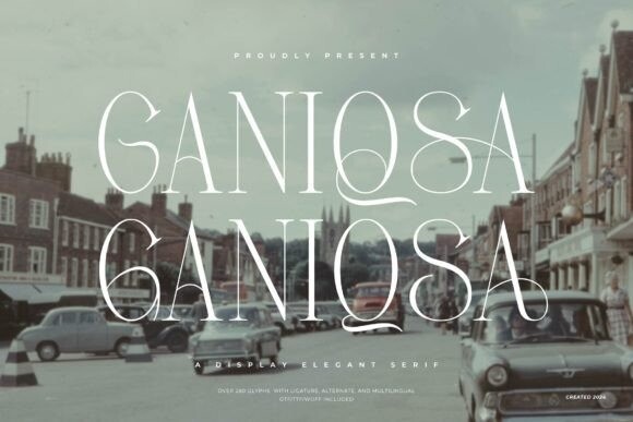 Ganiqsa Font is a stylish and elegant serif font with a classic touch. It features graceful letterforms and a refined appearance, perfect for adding a touch of sophistication to any design.