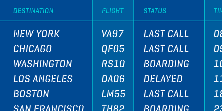 Geogrotesque Stencil Italic is the long-awaited companion of the popular Geogrotesque Stencil. As its upright partner, Geogrotesque Stencil Italic comes with 3 widths of cut (A, B and C).