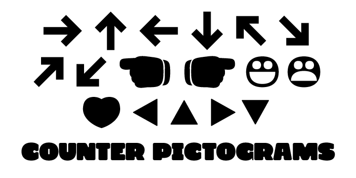 Each family member comes with a set of useful pictograms: arrows, triangles, hands, smilies and a heart.