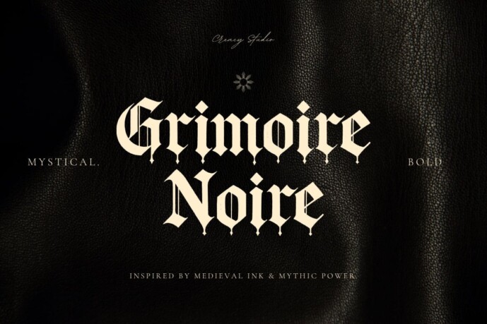 Grimoire Noir is a bold, decorative blackletter typeface inspired by medieval calligraphy, cathedral engravings, and ancient grimoires. Crafted with sharp angular strokes, dramatic swashes, and ornamental terminals, this font captures the spirit of gothic majesty and mystical storytelling.