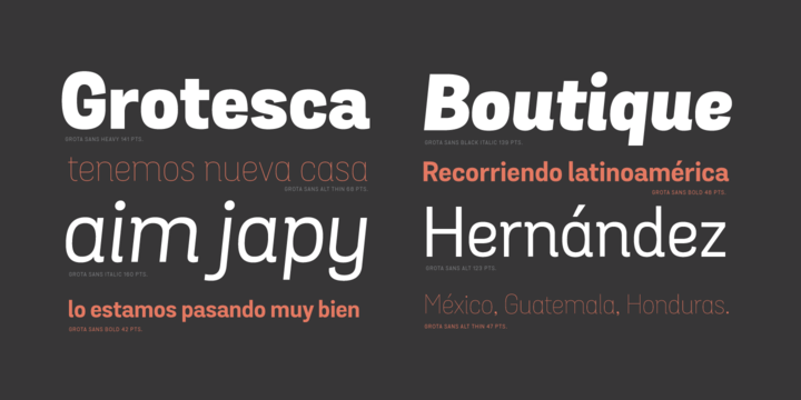 Grota is back in its new Sans and Rounded versions. The complete family consists of 40 fonts, 10 different weights, cursives and an alt version.