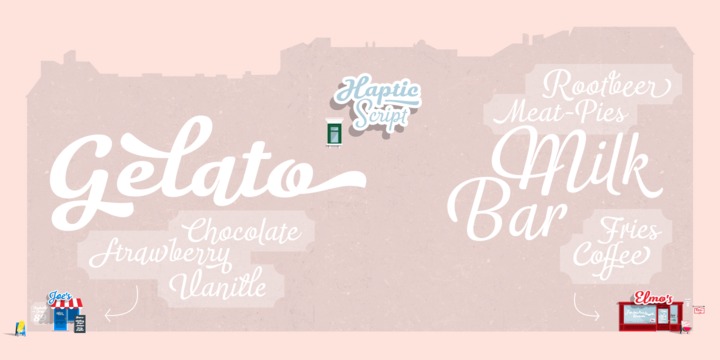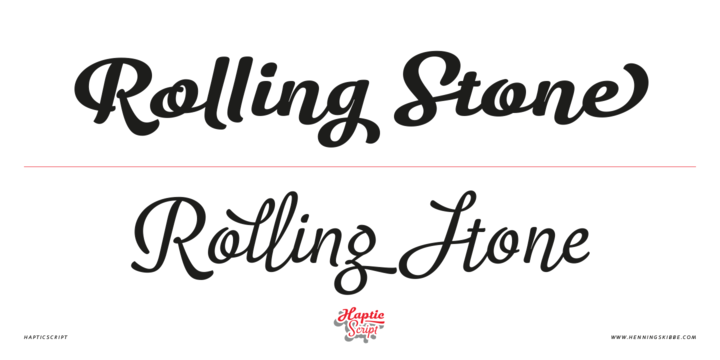 The HapticScript family is a connected brush script with a warm, personal and soft character. The typeface family has five styles from Light through Black. It was designed as a companion and extension to the Haptic sans-serif family.