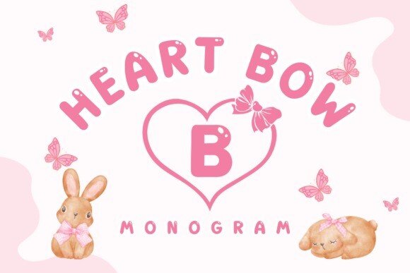 Heart bow Monogram Font. This monogram font is ideal for crafting, branding, and decorating any project. It is a sweet decorative font, featuring a lovely bow ornament. Fall in love with its authentic feel and use it to create gorgeous wedding invitations, beautiful stationary art, eye-catching social media posts, and cute greeting cards. Also with their help, you can create a logo or beautiful frame for your home.