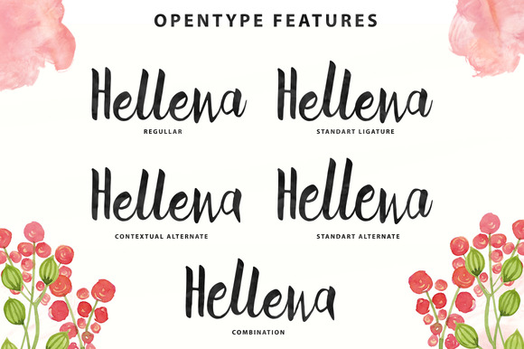 Hellena Script is a beautiful handmade brush script give the natural looks. 238 glyphs and alternate character contain with opentype features. Stylistic alternates, Ornament, Swash and more.You can access all those alternate characters by using OpenType savvy programs such as Adobe Illustrator and Adobe InDesign.