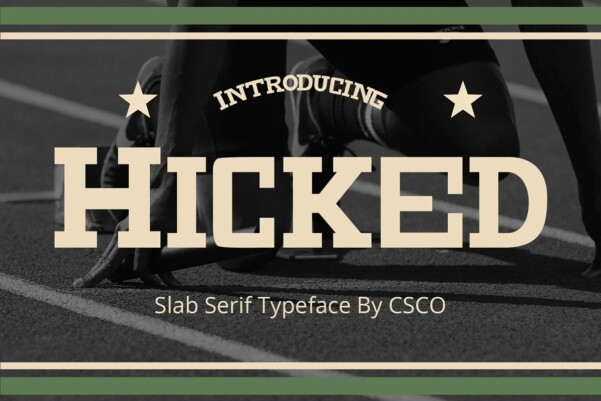 Hicked Font – Slab Serif Font Hicked is a bold, slab serif font, ideal for impactful design work. Its masculine appearance gives it a strong presence. This font stands out in headings, logos, and posters. It’s perfect for anyone seeking a robust typeface.