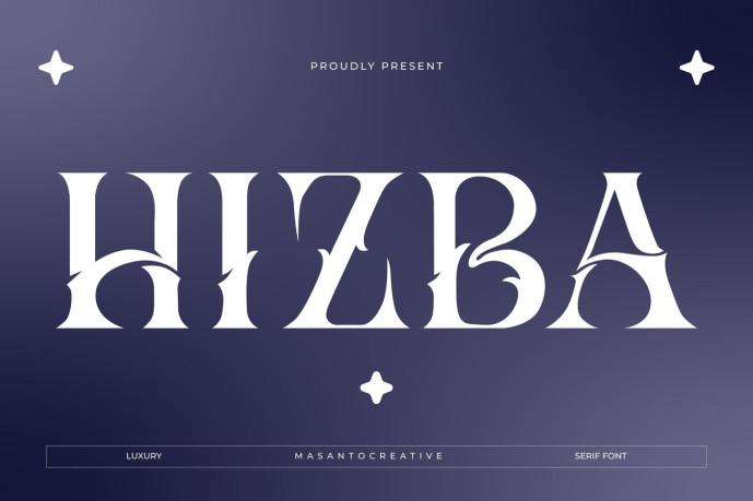 Hizba Font is an exclusive luxury ornamental serif typeface designed with bold curves, crisp decorative cutouts, and a distinctive high-end aesthetic. Its unique character forms make it an ideal tool for designers seeking a typeface that is artistic, iconic, and high-end. This typeface is ideal for logo design, fashion brands, jewelry packaging, editorial layouts, product labels, posters, invitations, and any project requiring a strong and elegant visual statement.
