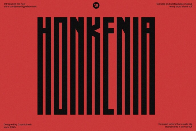 Meet Honkenia, our latest ultra-condensed font designed for modern and elegant typography. With its elegant and narrow letterforms, Honkenia is perfect for bold headlines, branding, editorial design and minimalist layouts. This font combines elegance and readability, making it a great choice for posters, packaging and high-impact digital content. Whether you’re working on a luxury brand, magazine headlines or eye-catching social media graphics, Honkenia offers a sophisticated and contemporary aesthetic. Its ultra-condensed style makes efficient use of space while maintaining a strong visual appeal. Elevate your designs with Honkenia’s unique charm