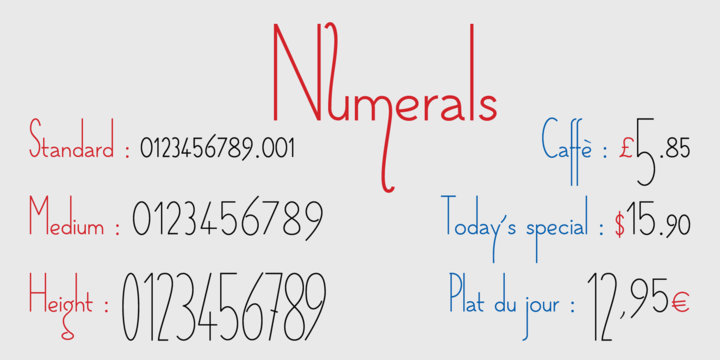 Each of both styles of this family of font contains two stylistic sets. With its ornamental capitals and its varied numerals, you can modulate the aspect of your texts as you want it.