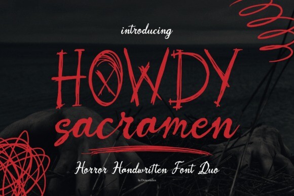Howdy Sacramen Font is a horror font, suitable for any project such as: logos, branding projects, homeware designs, product packaging, mugs, quotes, posters, shopping bags, t-shirts, book covers, name card, invitation cards, greeting cards, label, photography, watermark, special events, and all your other lovely projects that need a Horror Handwritten Font Duo taste.