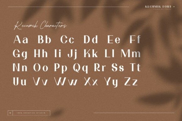 Kecumik Font, a stunning Glamour Serif typeface, seamlessly blends elegance with modern sophistication. Its graceful letterforms exhibit a harmonious balance of curves and serifs, exuding a timeless allure that captivates the eye. Kecumik’s intricate details and refined strokes contribute to its distinctive personality, making it an ideal choice for projects that demand a touch of glamour and a nod to classical aesthetics.