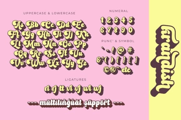 Krandish Font is a retro script font with vintage vibes. This font is cute, whimsical, and playful.