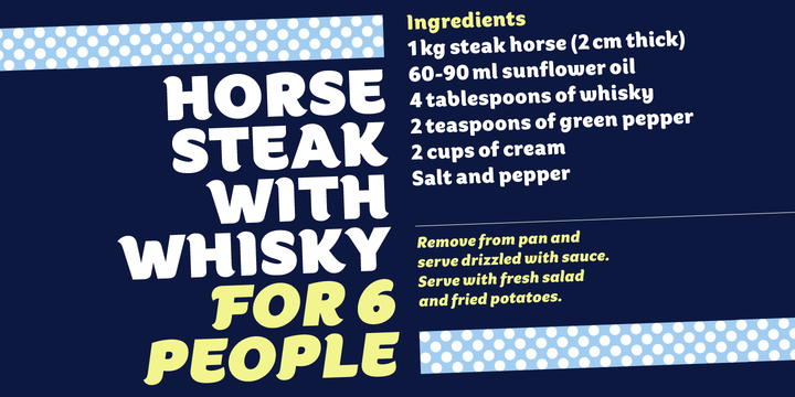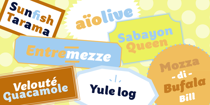 Kumiz FY fits very well with unctuous food packaging and any other logo-typing or crazy burger design. Available in two weights, roman and italic.