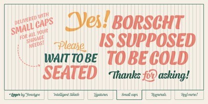 Lager Font Family is a plump, sympathetic and tasty script family inspired by good old American commercial lettering of mid-1900s – yet there’s more to it than meets the eye. Implemented with an exceptional feature called Intelligent Swash Lager delivers perfected results with an handmade feel. Depending on the choice of letters Intelligent Swash grows and stretches swashes automatically. Accompanied by various ligatures and stylistic alternates, Lager creates beautifully completed words with minimal effort. Just make sure you activate Titling Alternates from your OpenType-menu. The Lager package will be delivered with 5 complete weights, 2 sets of well-groomed numerals and Small Caps as a great companion for the script style. Get high on Lager, it won’t leave you short.