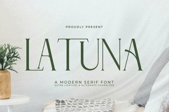 Latuna Font is a modern and premium serif font that is perfect for any project like: logos, branding projects, homewares designs, product packaging, mugs, quotes, posters, shopping bags, t-shirts, covers books, business cards, invitation cards, greeting cards, labels, photography, watermarks, special events and all your other luxury projects that require a premium taste.
